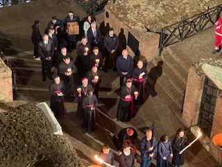 Am Freitag, den 18. April 2025, war der Kreuzweg am Kolosseum geplant, die religiöse Feier des Karfreitags. Die traditionelle katholische Veranstaltung, die Karsamstag und Ostersonntag vorausgeht, beginnt um 21 Uhr im Außenbereich des Kolosseums. In diesem Jahr ist die Karwoche mit Ostern und seinen Riten Teil des Jubiläumsjahres 2025. Papst Franziskus hat die Meditationen verfasst, den Vorsitz führt jedoch Kardinalvikar Baldassarre Reina. Der Weg des Kreuzwegs am Kolosseum umfasst 14 kanonische Stationen, beginnend am Kolosseum und endend am Venustempel auf dem Palatin.